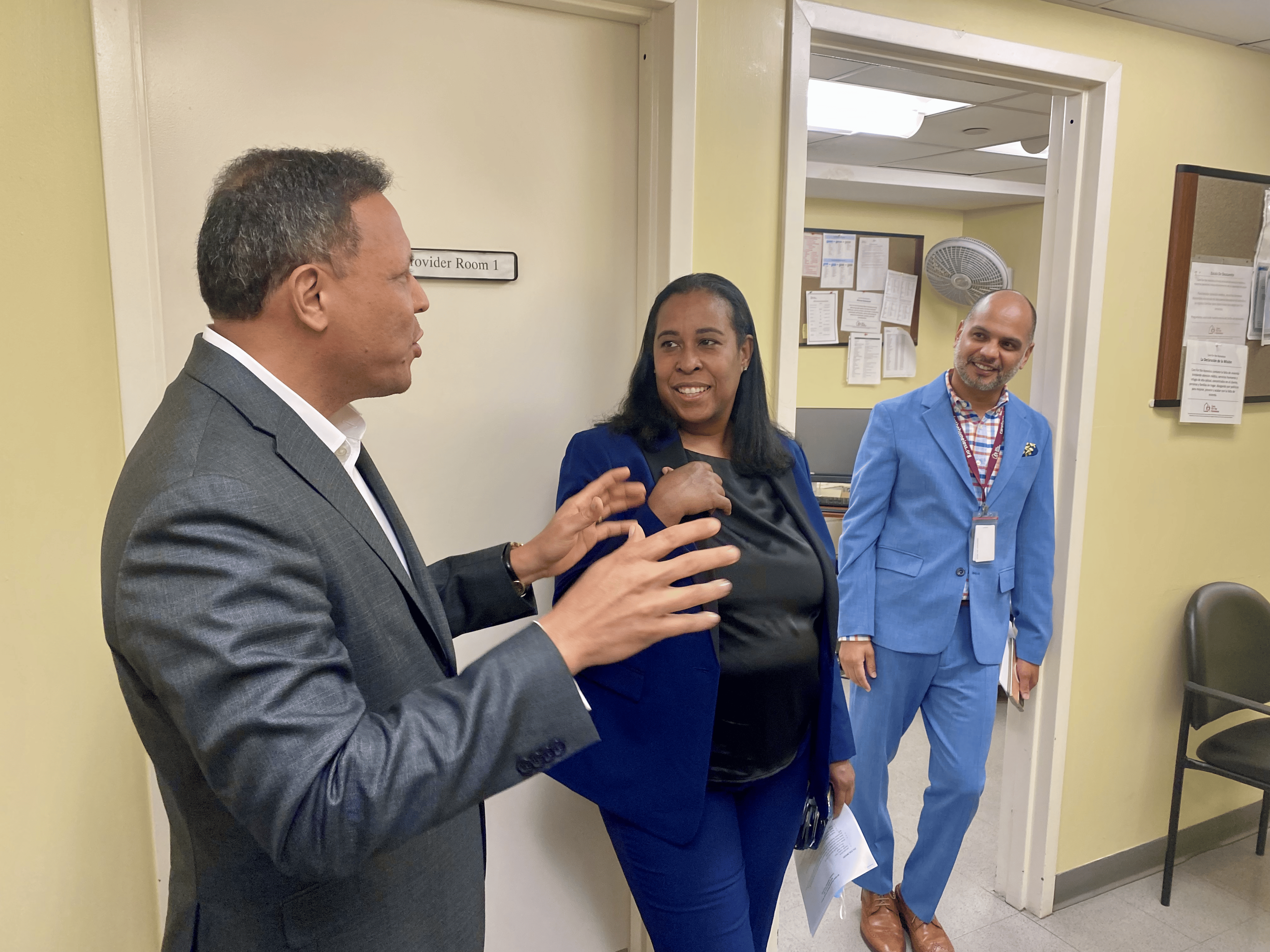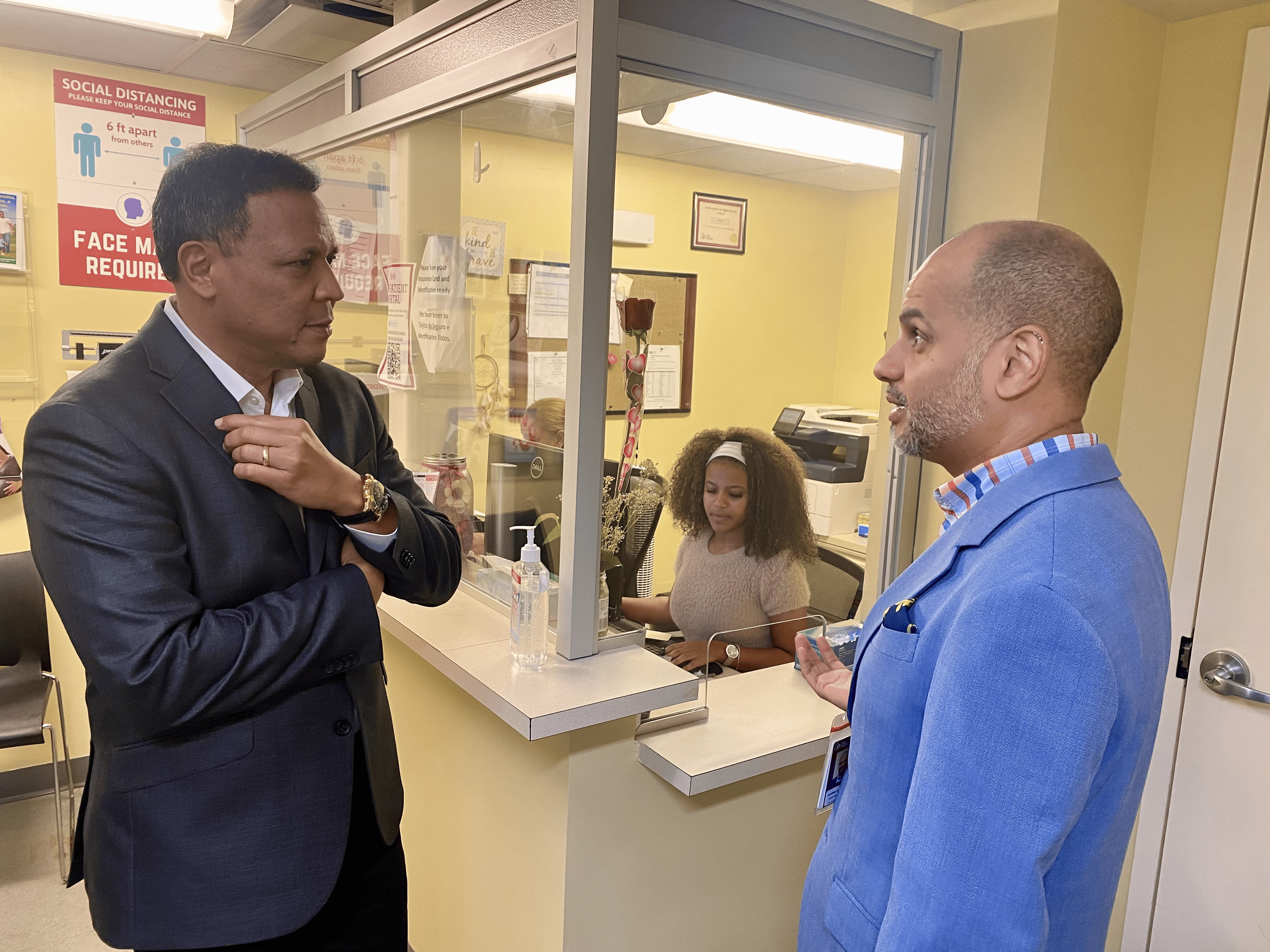 Upon arriving, Assemblymember Alvarez and his staff received a tour of our POTS health center, led by Chief Program Officer Jonathan Santos-Ramos and Chief Medical Officer Dr. Tawana Hill. The assemblymember had the opportunity to inspect the facilities and meet and speak with our staff, including Director of Dental Services Dr. Mary Zaklama, to learn about the services we provide. One of the many important issues they discussed was the challenge of serving uninsured patients, and the pride we take in caring for anyone who walks through our doors, regardless of their ability to pay.